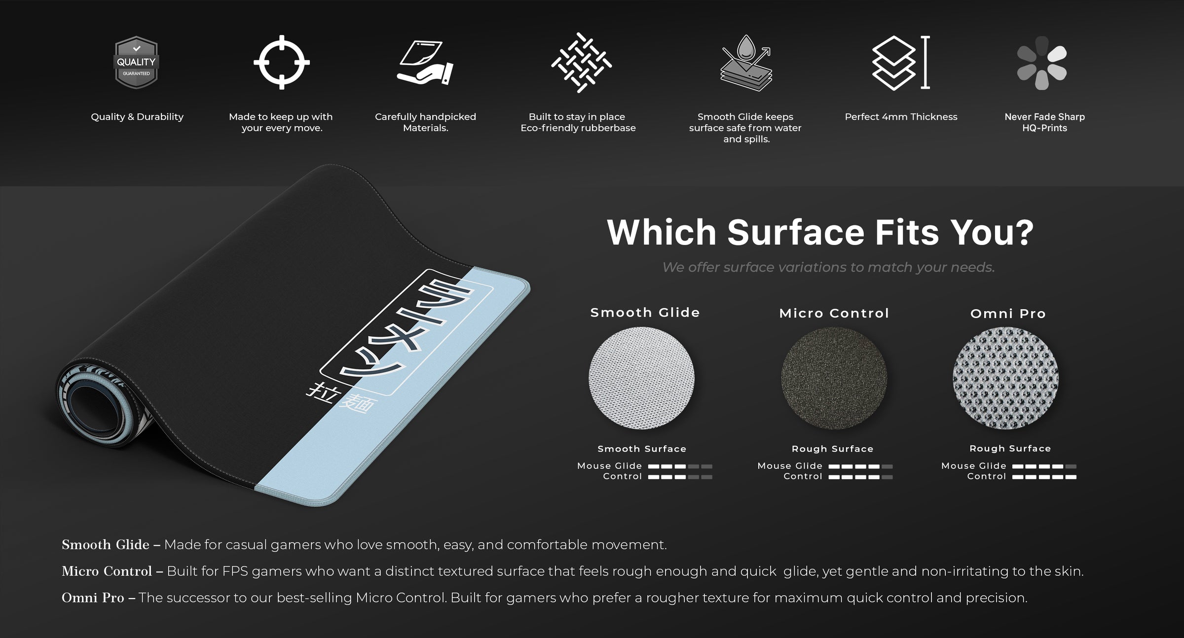 Over a decade ago, I started grinding through the ranks in CS, COD, Valorant, and Battlefield — driven by competition and a relentless pursuit of perfection. While building the ultimate game space, I realized that even the best setups were missing a vital element: I was still using a plain black mousepad that performed well but felt uninspiring and out of place.