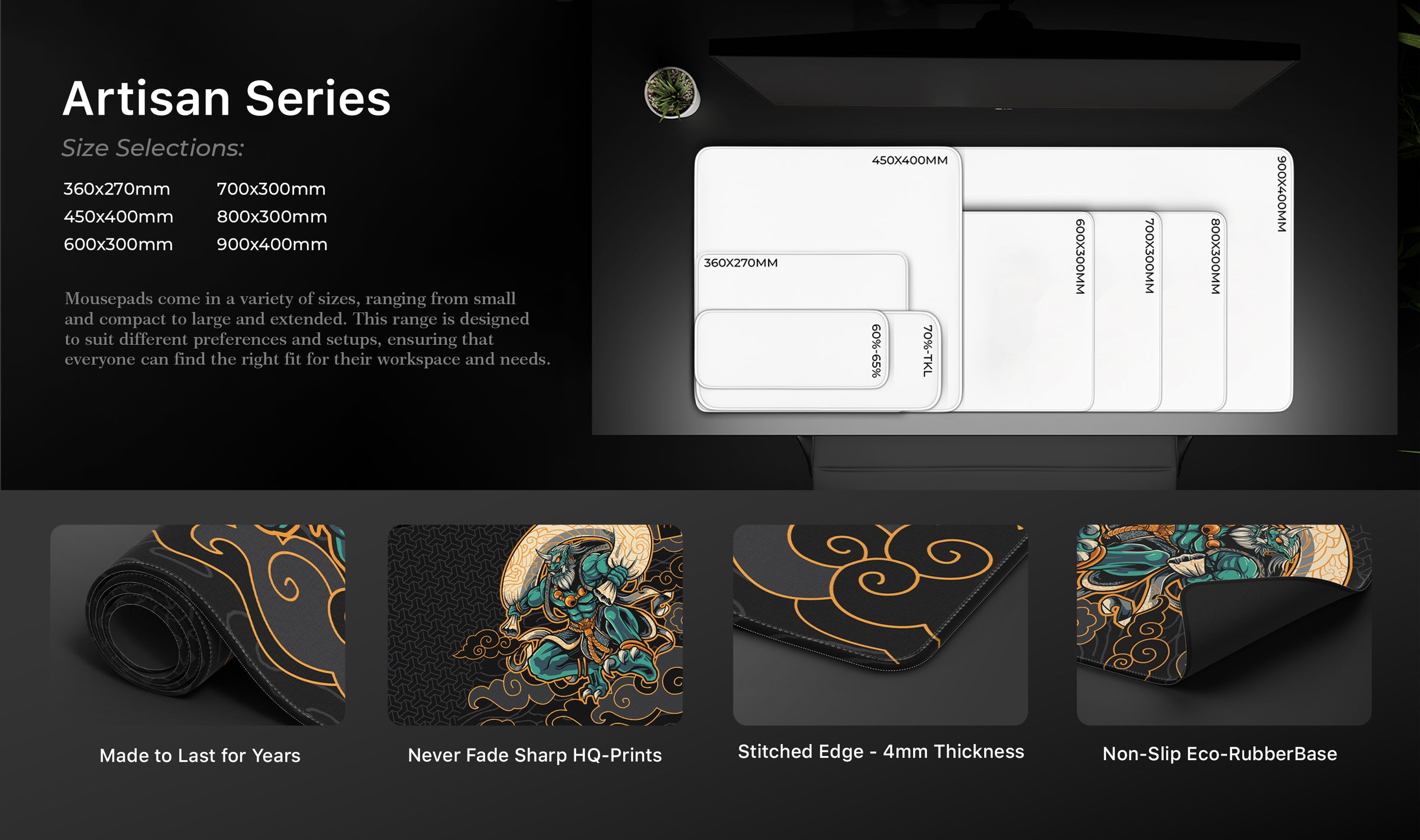 What began as a personal quest became a greater purpose. Today, that same drive fuels our passion for bringing perfection from the screen to the desk. From then on, our mission has been to create deskmats as true works of art — combining premium visual design with the real performance needs of modern hobbyists and gamers.