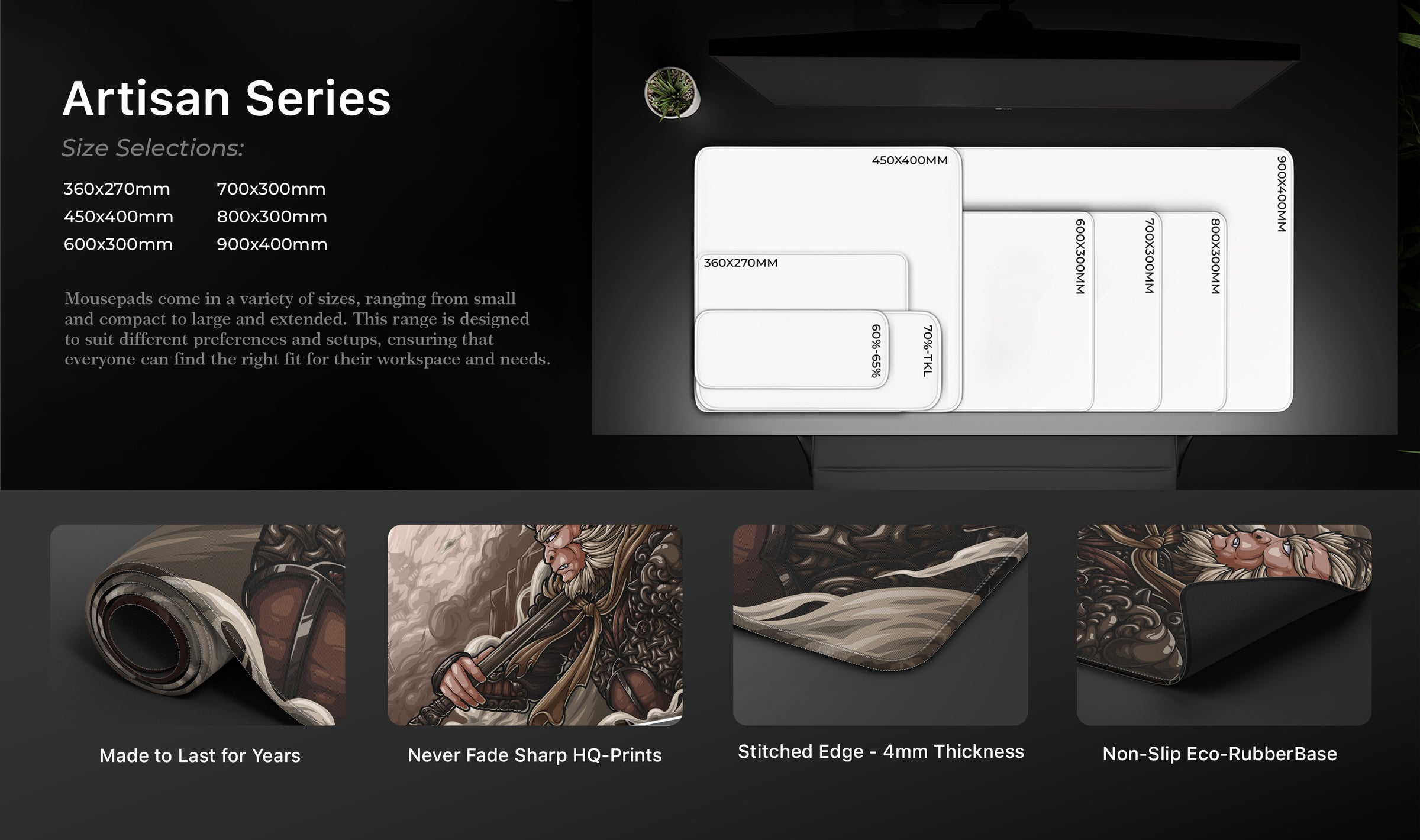 What began as a personal quest became a greater purpose. Today, that same drive fuels our passion for bringing perfection from the screen to the desk. From then on, our mission has been to create deskmats as true works of art — combining premium visual design with the real performance needs of modern hobbyists and gamers.