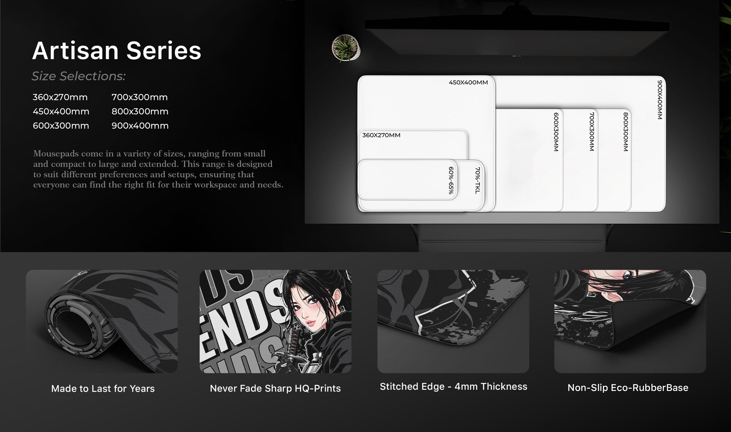 What began as a personal quest became a greater purpose. Today, that same drive fuels our passion for bringing perfection from the screen to the desk. From then on, our mission has been to create deskmats as true works of art — combining premium visual design with the real performance needs of modern hobbyists and gamers.